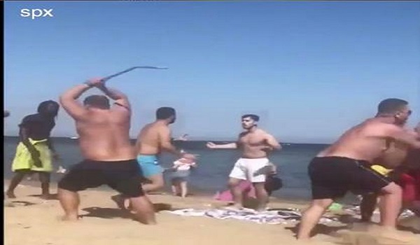 Μια ομάδα Bρετανών άρχισε έναν τρομακτικό καβγά σε δημοφιλή τουριστική παραλία, μπροστά σε οικογένειες και παιδιά.