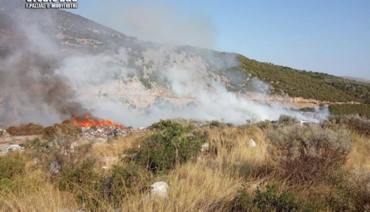 Η πυρκαγιά εντοπίστηκε στη χωματερή του Λυγουριού η οποία δεν είναι πρώτη φορά που αναφλέγεται.