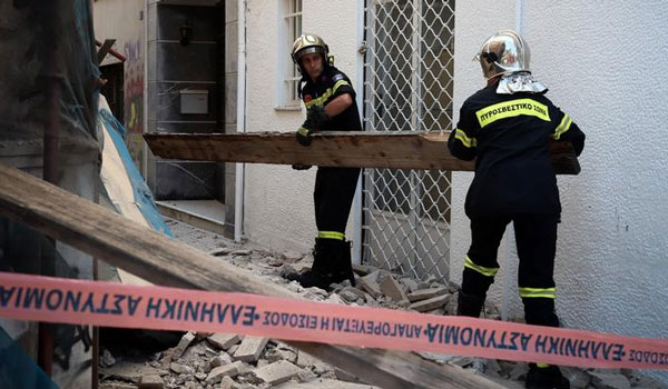 Την ίδια στιγμή, στο κέντρο της Αθήνας φθορές έχει υποστεί ένα παλιό κτίριο στην οδό Ερμού 90, χωρίς ευτυχώς να τραυματιστεί κανείς, εκτός από υλικές ζημιές σε αυτοκίνητο που ήταν σταθμευμένο από κάτω.