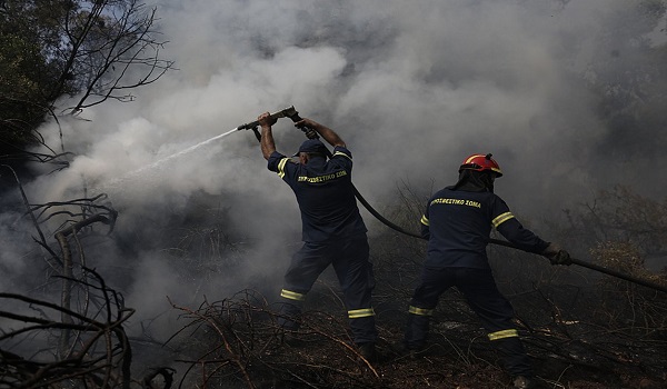 Οι επιτελείς της πυροσβεστικής φιλοδοξούν ότι αν επικρατήσουν αυτές οι συνθήκες θα μπορέσουν να αντιμετωπίσουν τη φωτιά σ’ αυτόν τον δρόμο, όπου έχουν συγκεντρωθεί περισσότερα από 25 οχήματα της πυροσβεστικής και ένας μεγάλος αριθμός πυροσβεστών.
