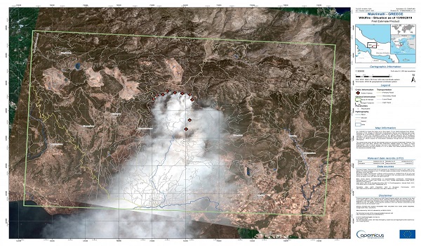 Ακριβώς εξαιτίας του πυκνού καπνού η υπηρεσία Copernicus ενημέρωσε μέσω Twitter ότι δεν είναι δυνατόν να γίνει απόψε αναλυτική εκτίμηση των καμένων εκτάσεων, η οποία αναμένεται να ολοκληρωθεί την Τετάρτη.