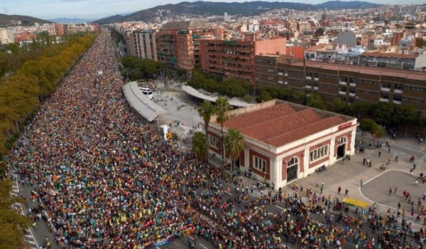 Θέατρο ταραχών και χθες, η λεωφόρος Paseo de Gracia κατακλύστηκε από μια λαοθάλασσα κίτρινη, κόκκινη και μπλε, τα χρώματα της σημαίας των αυτονομιστών. Σύμφωνα με τη δημοτική αστυνομία, 525.000 άνθρωποι συμμετείχαν στην τεράστια διαδήλωση.