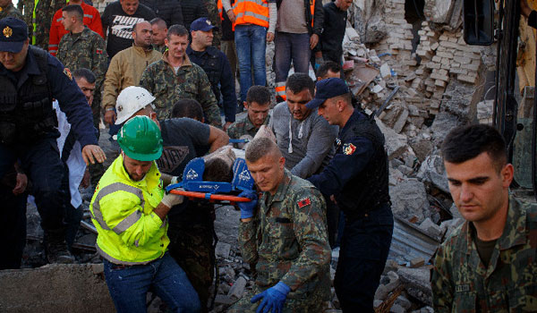 Τα κλιμάκια της ΕΜΑΚ εργάζονται αδιάκοπα για τη διάσωση των αγνοούμενων από τα συντρίμμια και δεν είναι τα μόνα. Συνεργεία διάσωσης έχουν σταλεί στην Αλβανία από τις περισσότερες χώρες των Βαλκανίων αλλά και την Ιταλία.