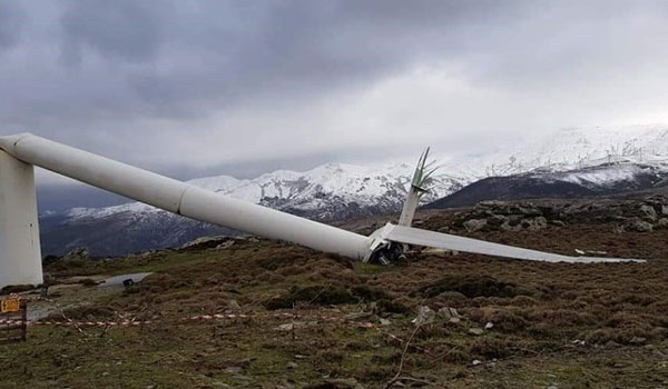 Σοκ προκαλούν οι εικόνες από τις λυγισμένες ανεμογεννήτριες στην Κάρυστο.