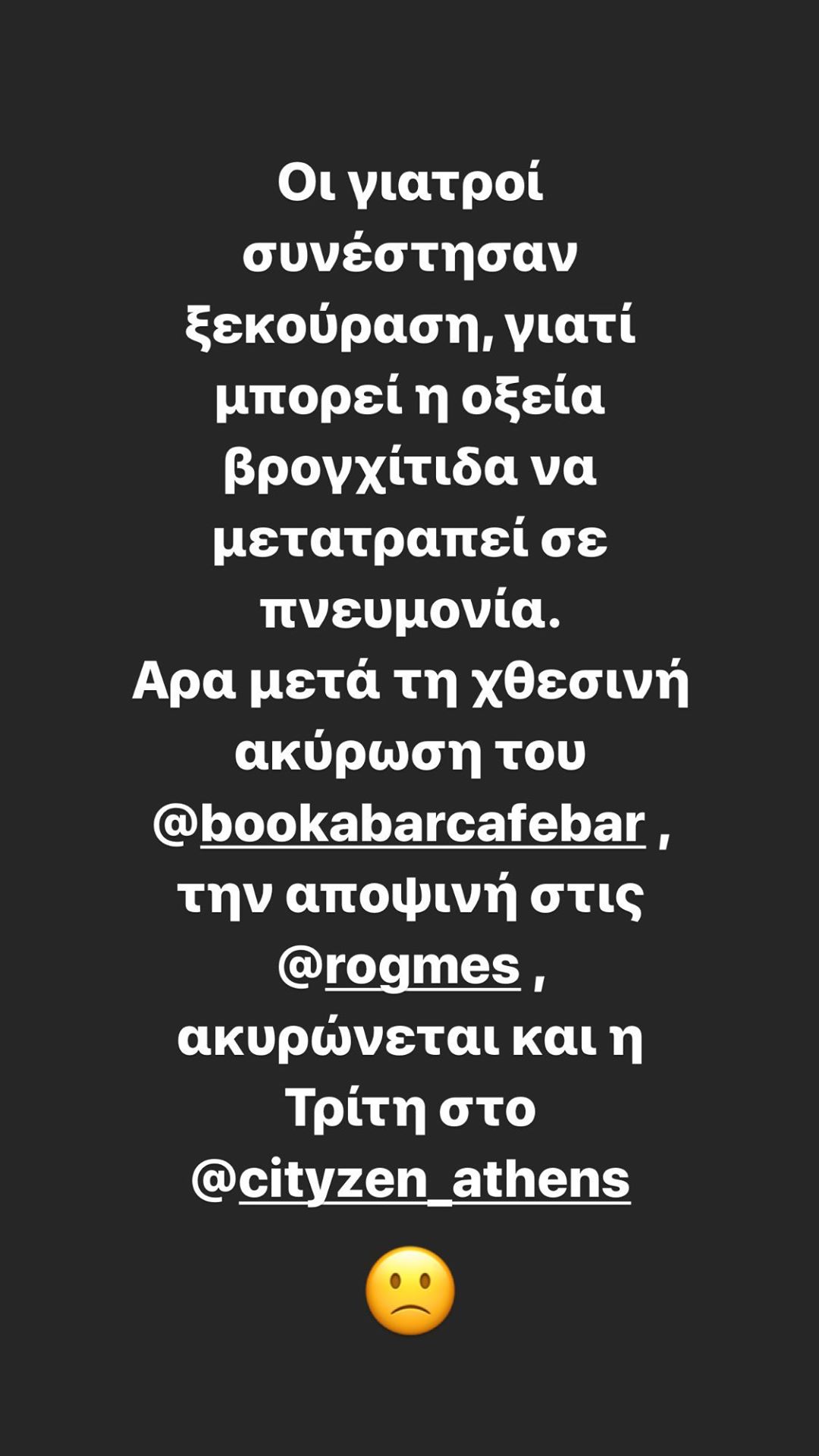 «Οι γιατροί συνέστησαν ξεκούραση, γιατί μπορεί η οξεία βρογχίτιδα να μετατραπεί σε πνευμονία…» σημείωσε χαρακτηριστικά ο Χάρης Βαρθακούρης στον προσωπικό του λογαριασμό στο Instagram.