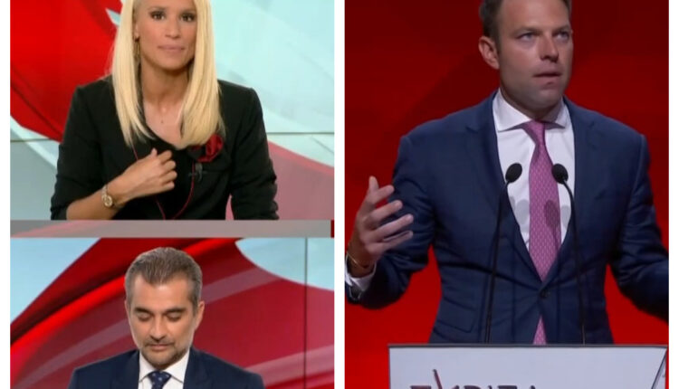 «Πάντως, βλέποντας και τα στιγμιότυπα που προβάλλονται και αυτή την στιγμή στους δέκτες μας, θέλω να κάνω και μια στιλιστική παρατήρηση, που έχει και πολιτικό άρωμα, εφόσον μιλάμε για το ΣΥΡΙΖΑ. Ο Στέφανος Κασσελάκης εμφανίστηκε με γραβάτα… Φέρνει έναν νέο αέρα στο ΣΥΡΙΖΑ, σε όλα τα επίπεδα», σχολίασε η Κατερίνα Παναγοπούλου.