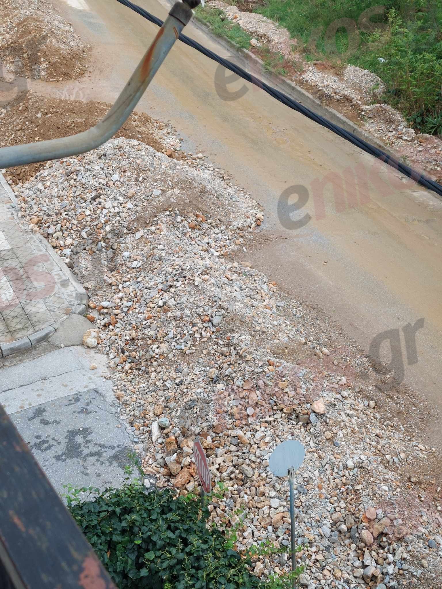 Παράλληλα, όπως φαίνεται μεγάλος όγκος φερτών υλικών έχει συγκεντρωθεί στους δρόμους, οι οποίοι έχουν μετατραπεί σε ποτάμια.