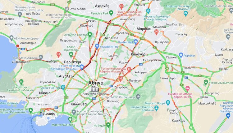 10′-15′ από τον κόμβο Μεταμόρφωσης μέχρι τον κόμβο Κηφισίας,