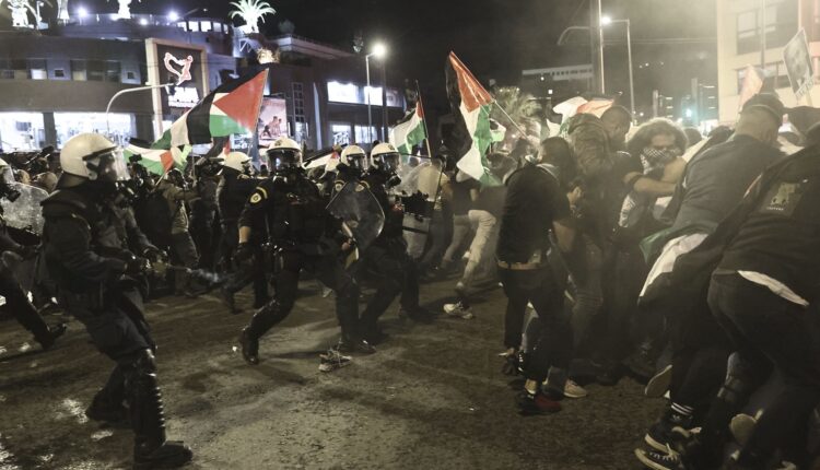 Επίθεση με χημικά και χειροβομβίδες κρότου λάμψης δέχθηκαν από δυνάμεις των ΜΑΤ οι διαδηλωτές έξω από την πρεσβεία του Ισραήλ στην Αθήνα.