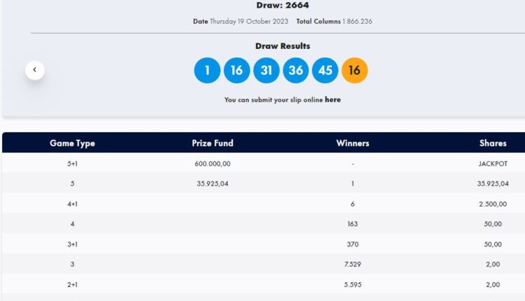 Στην κλήρωση ΤΖΟΚΕΡ, την Πέμπτη 19/10/2023 (αριθμός κλήρωσης 2664), οι τυχεροί αριθμοί ήταν οι εξής: