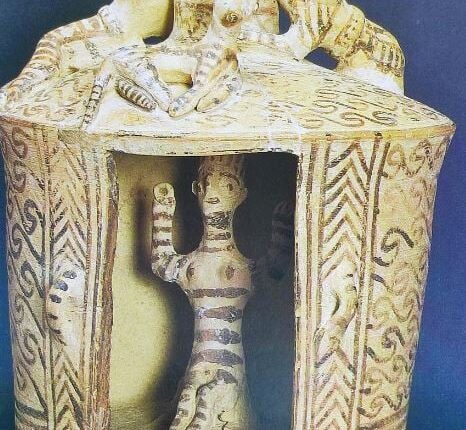 Πρωτογεωμετρικός οικίσκος με παράσταση θεότητας σε ιερό. Βρέθηκε στην περιφέρεια του ανακτόρου