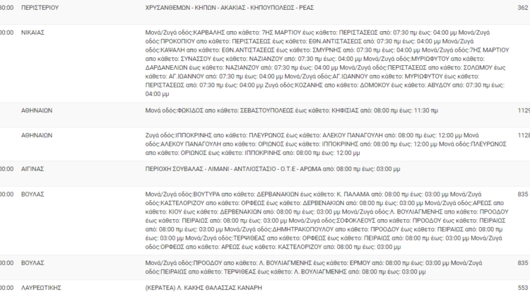 ΔΕΔΔΗΕ: Σε ποιες περιοχές της Αττικής θα γίνουν διακοπές ρεύματος σήμερα (20/11)