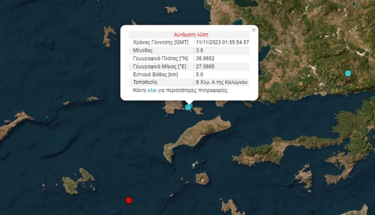 Δύο σεισμικές δονήσεις (3,8 και 3,6) σε διάστημα δύο λεπτών ανοιχτά της Καλύμνου