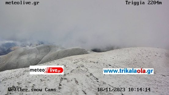 Στα λευκά «ντύθηκε» και η κορυφή Τριγγία (2.204 μέτρα) της νότιας Πίνδου του δήμου Μετεώρων στα Τρίκαλα. Η live κάμερα του meteolive.gr κατέγραψε το πρώτο χιόνι της χειμερινής περιόδου.