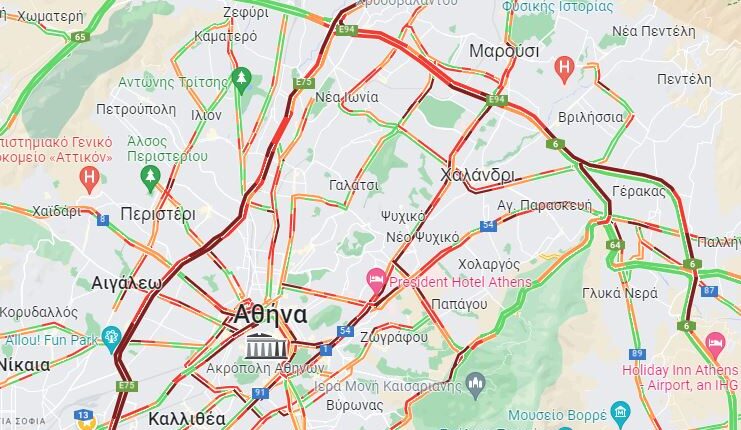Παράλληλα, στο «κόκκινο» είναι και η Λεωφόρος Κηφισίας τόσο στο ρεύμα ανόδου όσο και στο ρεύμα καθόδου, ενώ την ίδια στιγμή το αδιαχώρητο επικρατεί στις βασικές οδικές αρτηρίες στο κέντρο της Αθήνας.