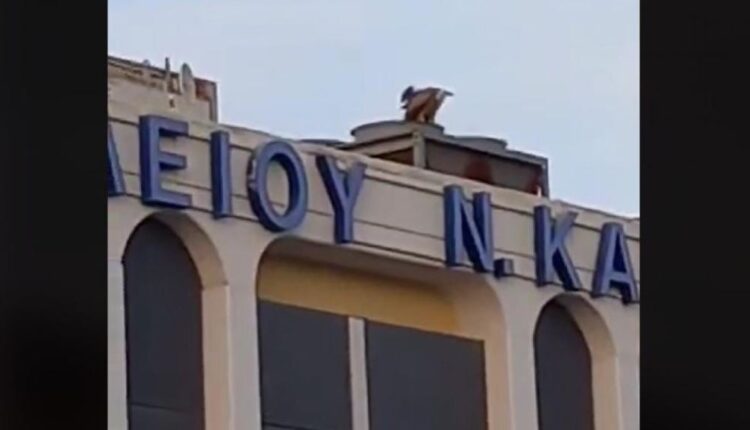 Όπως είπαν οδηγοί ταξί που τηλεφώνησαν στο Ράδιο Κρήτη, το αρπακτικό πουλί βρίσκεται από το απόγευμα του Σαββάτου στο αεροδρόμιο και όπως φαίνεται στο βίντεο δέχεται επίθεση από κοράκια.