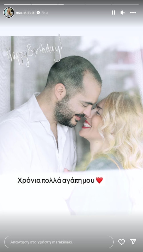 Η Μαρία Ηλιάκη δημοσίευσε και μια φωτογραφία της με τον σύζυγό της γράφοντας: «Χρόνια πολλά αγάπη μου».
