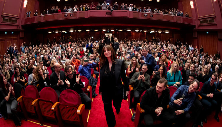 Εν μέσω επιφωνημάτων, φλας και εκφράσεων λατρείας, η Μόνικα Μπελούτσι περπατά, χαιρετά ευγενικά τον κόσμο και στέλνει ένα φιλί στον αέρα.