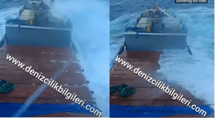 Όπως μπορείτε να δείτε στο παρακάτω βίντεο που δημοσίευσε μία τουρκική ιστοσελίδα, το φορτηγό πλοίο παλεύει με τα κύματα σε μία προσπάθεια να παραμείνει στην επιφάνεια, ενώ η πρύμνη του έχει ήδη βυθιστεί, και έχει εκπέμψει «MAYDAY».