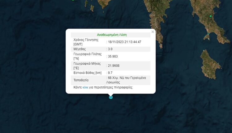 Σεισμός 3 βαθμών της κλίμακας Ρίχτερ σημειώθηκε το βράδυ του Σαββάτου ανοιχτά της Λακωνίας.