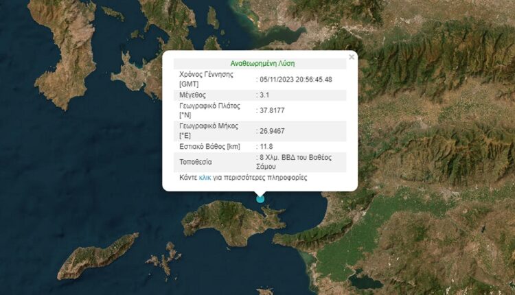 Σεισμός μεγέθους 3,1 βαθμών της κλίμακας Ρίχτερ σημειώθηκε το βράδυ της Κυριακής ανοιχτά της Σάμου.