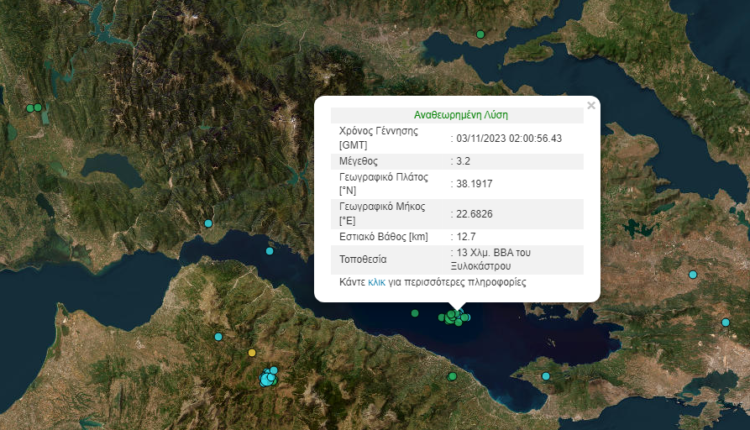 Σύμφωνα με όσα γράφει το Γεωδυναμικό Ινστιτούτο το επίκεντρο της δόνησης εντοπίζεται στα 13 χλμ. Βόρεια, Βορειοανατολικά του Ξυλοκάστρου, ενώ το εστιακό βάθος υπολογίζεται στα 12,7 χλμ.