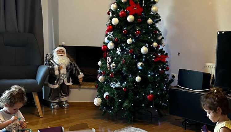 Στη φωτογραφία που δημοσίευσε το απόγευμα της Δευτέρας 18/12 η Χριστίνα Μπόμπα μας δείχνει τις μικρές Αριάνα και Φιλίππα να παίζουν μπροστά από το χριστουγεννιάτικο δέντρο.