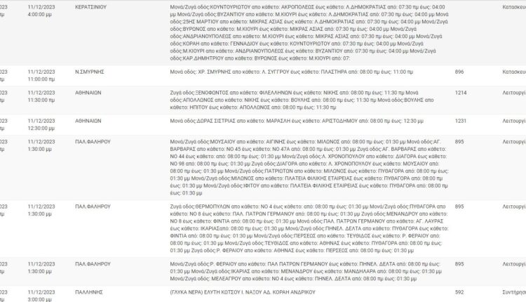 ΔΕΔΔΗΕ: Σε ποιες περιοχές της Αττικής θα γίνουν διακοπές ρεύματος σήμερα (11/12)