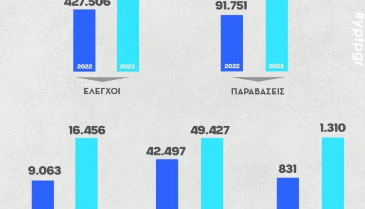 ◼Στο Λεκανοπέδιο αντίστοιχα είχαμε 491.241 ελέγχους Τροχαίας και βεβαίωση 113.510 παραβάσεων (έναντι 427.506 ελέγχων και 91.751 παραβάσεων στο αντίστοιχο διάστημα το 2022).