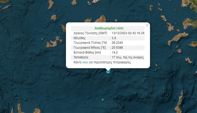 Σεισμός 3,8 Ρίχτερ ανοιχτά της Ανάφης