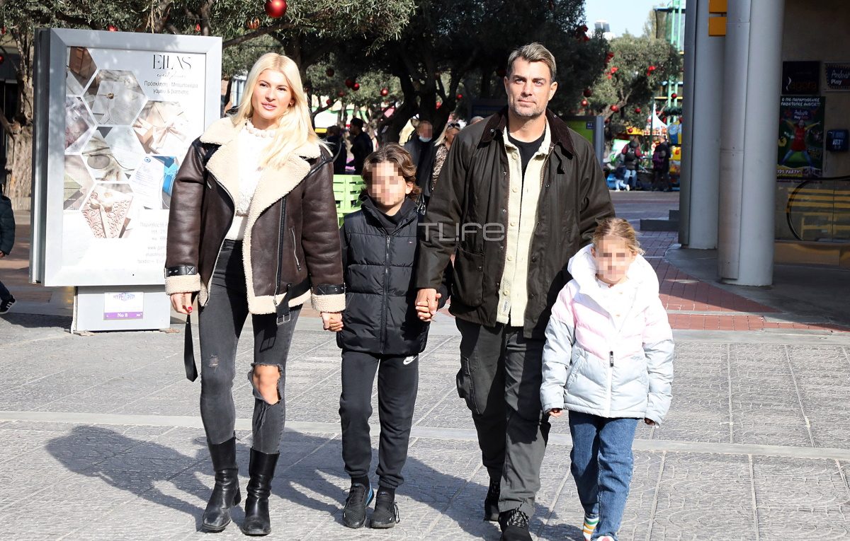 Στέλιος Χανταμπάκης – Όλγα Πηλιάκη: Βόλτα στο κέντρο της πόλης με τα παιδιά τους – Φωτογραφίες