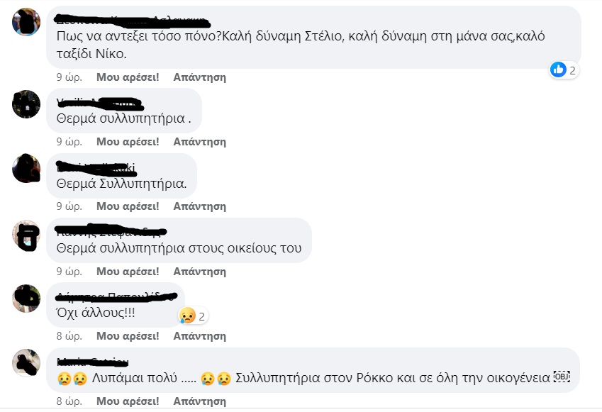Κάτω από την ανάρτηση στα social media, οι θαυμαστές του καλλιτέχνη έσπευσαν να στείλουν τα συλλυπητήριά τους στον Στέλιο Ρόκκο για τον ξαφνικό θάνατο του αδελφού του.
