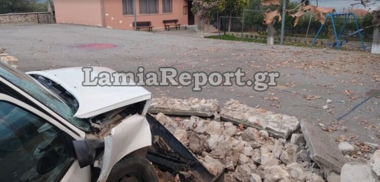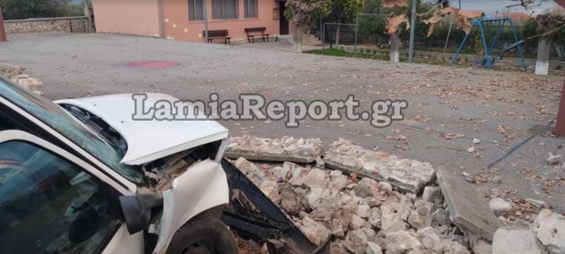 Φθιώτιδα: Εξετράπη της πορείας του κι έπεσε πάνω σε μαντρότοιχο σχολείου – ΦΩΤΟ