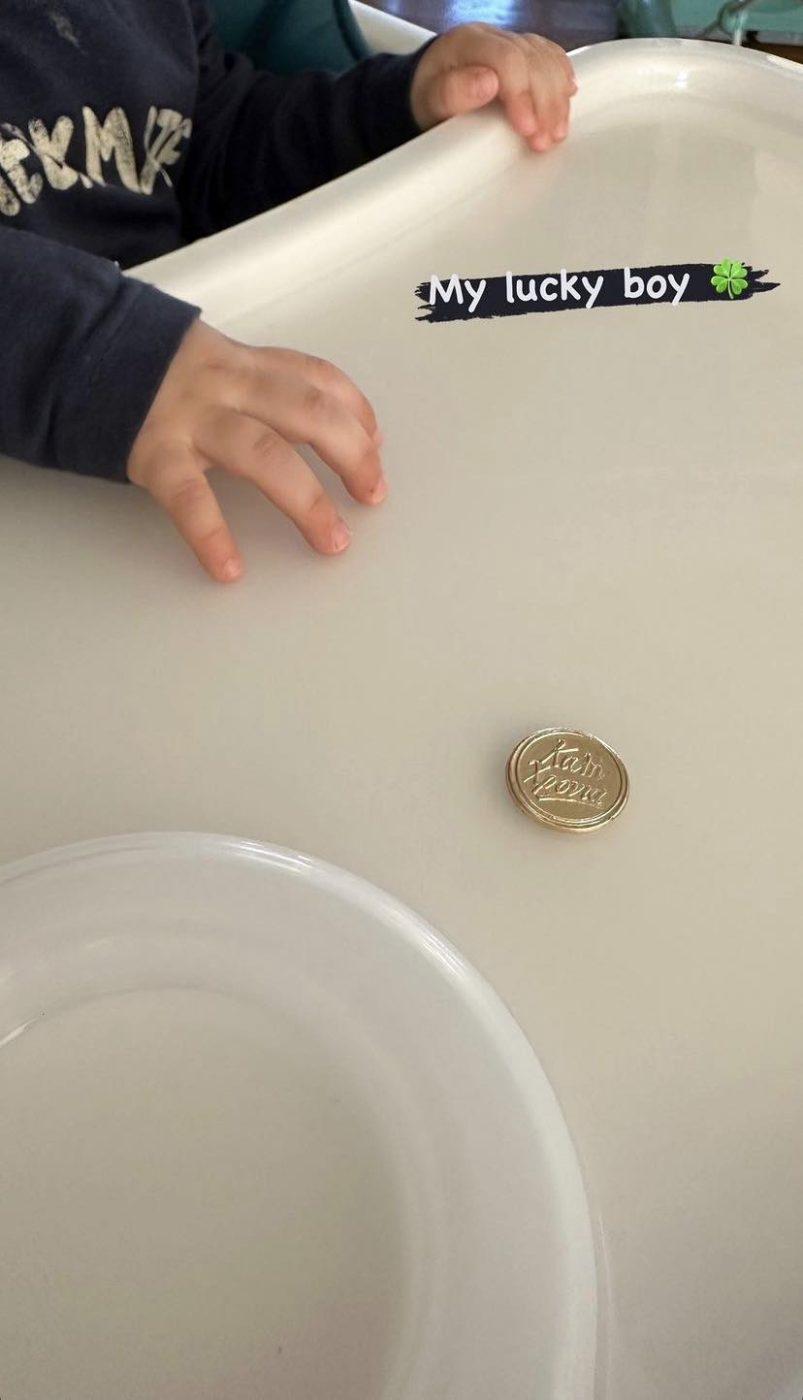 Το τυχερό μου αγόρι», έγραψε η Κωνσταντίνα Σπυροπούλου στη φωτογραφία που με τον γιο της, ο οποίος κάθεται στο καρεκλάκι του και έχει δίπλα του το φλουρί.