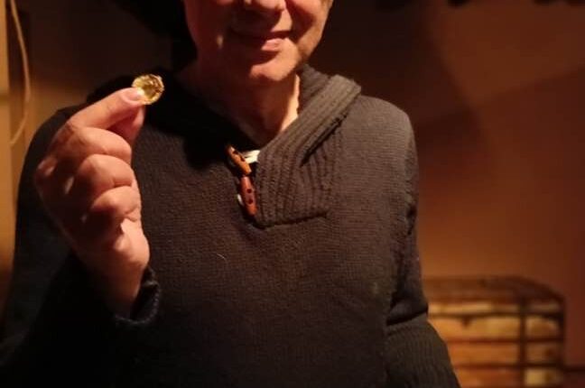 Ο ίδιος, χαμογέλασε με νόημα και πόζαρε επιδεικνύοντας το τυχερό φλουρί, καθώς δεν πίστευε και εκείνος πως το είχε βρει.