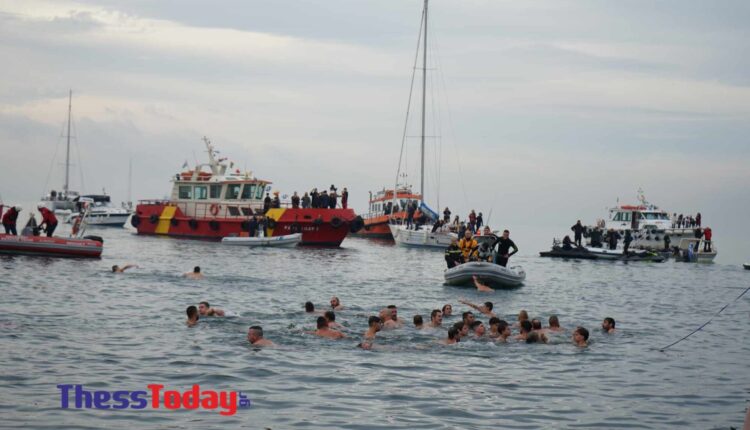 Για να πιάσουν τον σταυρό έπεσαν στα κρύα νερά τουλάχιστον 35 κολυμβητές, ανάμεσά τους και γυναίκες, ενώ η τελετή έγινε για πρώτη φορά μετά από χρόνια, στην προβλήτα Α’ του λιμανιού, έπειτα από απόφαση του μητροπολίτη Φιλόθεου.