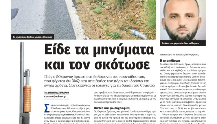 Βόλος: Είδε τα μηνύματα και τον σκότωσε – Πώς ο 50χρονος έφτασε στη δολοφονία του κουνιάδου του που βίαζε την κόρη του