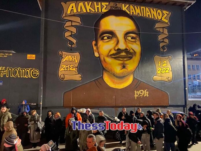 Δεκαεννέα κεριά άναψαν συμβολικά στις 00:19 σήμερα 1η Φεβρουαρίου στο σημείο όπου πριν από δύο χρόνια δολοφονήθηκε ο 19χρονος Άλκης Καμπανός, σε τυφλό οπαδικό χτύπημα στην περιοχή Χαριλάου της Θεσσαλονίκης.