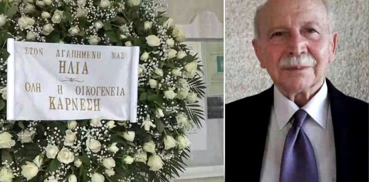 Τα βλέμματα όλων προσέλκυσε ένα στεφάνι με λευκά τριαντάφυλλα από την οικογένεια Καρνέση, το οποίο έγραφε: «Στον αγαπημένο μας Ηλία, όλη η οικογένεια Καρνέση».