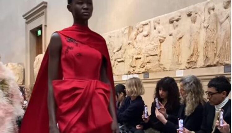Η χθεσινή επίδειξη μόδας στο Βρετανικό Μουσείο έγινε στον περιορισμένο χώρο της Duveen Gallery, παρουσία δεκάδων καλεσμένων. Τα Γλυπτά χρησιμοποιήθηκαν ως απλά διακοσμητικά στοιχεία, χωρίς να υπάρχει η οποιαδήποτε διαλεκτική σχέση της συλλογής με την ελληνική αρχαιότητα, χωρίς να υπάρχει καμία σχέση με τις αξίες, που τα φειδιακά έργα εκπέμπουν και συμβολίζουν. Τα Γλυπτά χρησιμοποιήθηκαν ως σκηνικό, γεγονός που ευτελίζει την οικουμενική τους αξία, την οποία προβάλει το Βρετανικό Μουσείο υιοθετώντας για τον εαυτό του τον χαρακτηρισμό του οικουμενικού μουσείου. Να θυμίσουμε ότι υπάρχουν περιπτώσεις που τα Γλυπτά στη Duveen Gallery υπέστησαν φθορές, εξ αιτίας συνωστισμού και απροσεξίας των επισκεπτών.