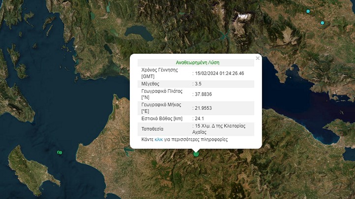 Σύμφωνα με το Γεωδυναμικό Ινστιτούτο το επίκεντρο της δόνησης εντοπίζεται στα 21 χλμ. δυτικά της Κλειτορίας Αχαΐας, ενώ το εστιακό βάθος υπολογίζεται στα 24,1 χλμ.