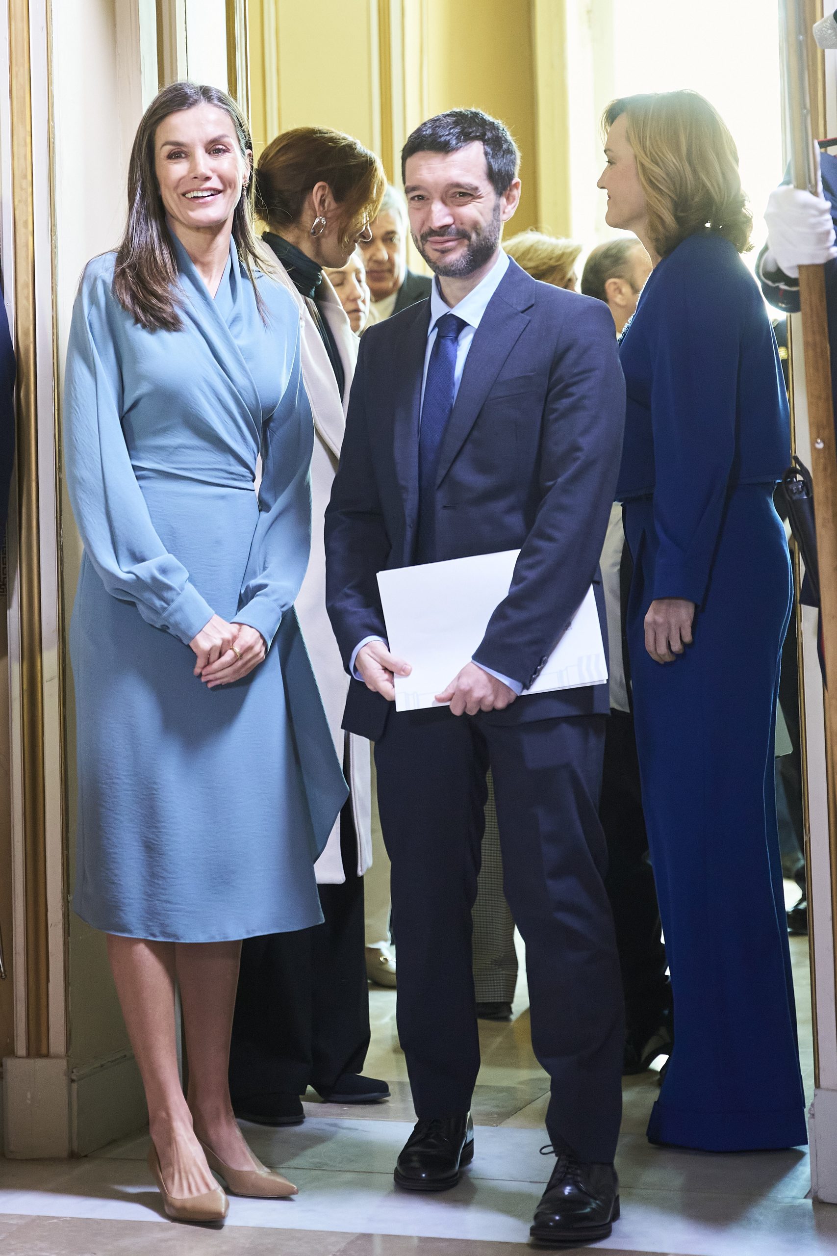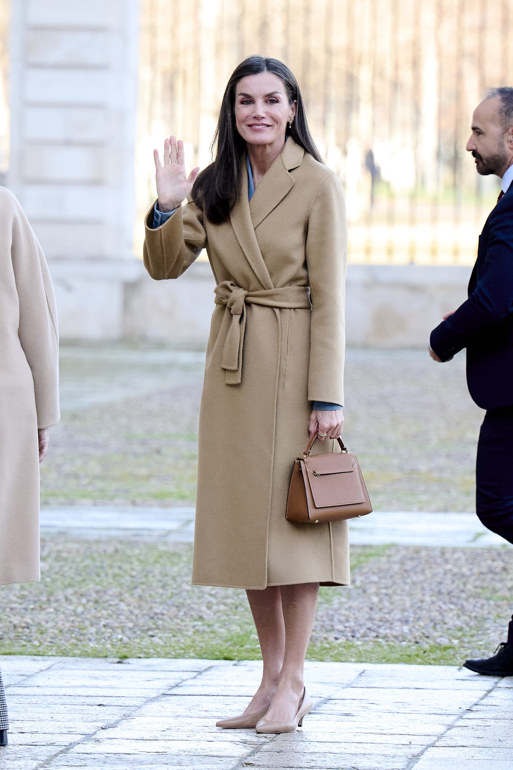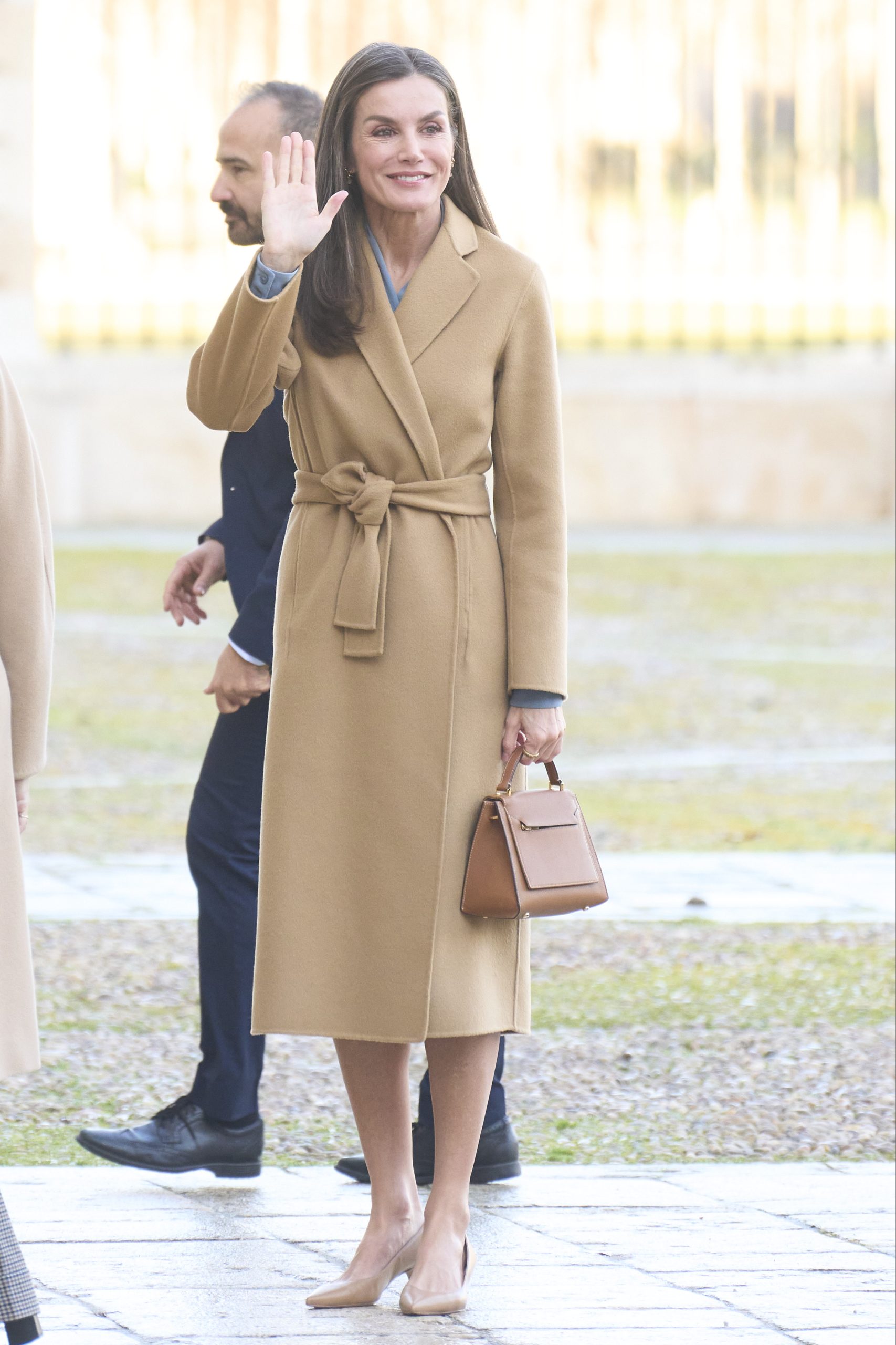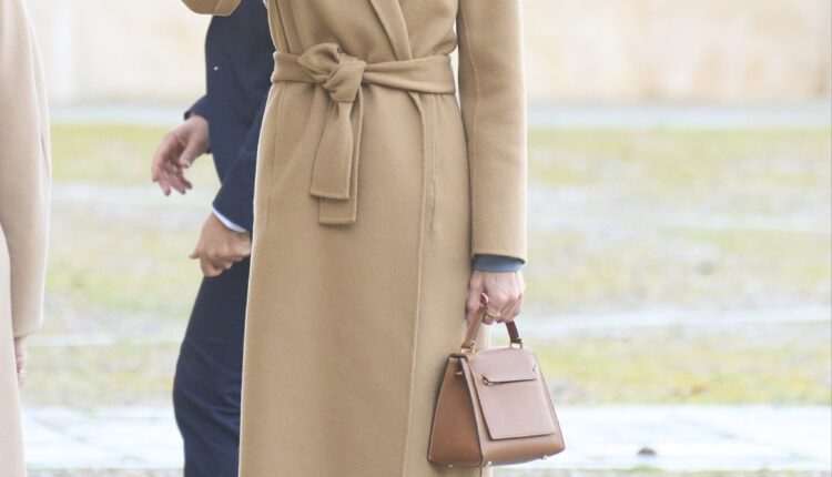 Ολοκλήρωσε το look της με καφέ top handle τσάντα από την Carolina Herrera και nude slingback γόβες. Τα καμηλό παλτό είναι βασικό στοιχείο για τον κρύο καιρό, οπότε είναι λογικό ότι η Letizia το διάλεξε μέσα στον χειμώνα, όμως η έκπληξη είναι ότι το συνδύασε με ένα ανοιξιάτικο γαλάζιο φόρεμα από τον Ισπανό σχεδιαστή Adolfo Dominguez.