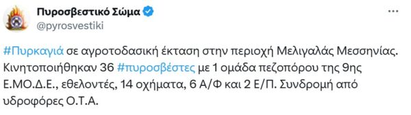 Στο σημείο επιχείρησαν 36 πυροσβέστες με 1 ομάδα πεζοπόρου της 9ης Ε.ΜΟ.Δ.Ε., εθελοντές και 14 οχήματα, ενώ συνδρομή παρείχαν και οι υδροφόρες του δήμου.