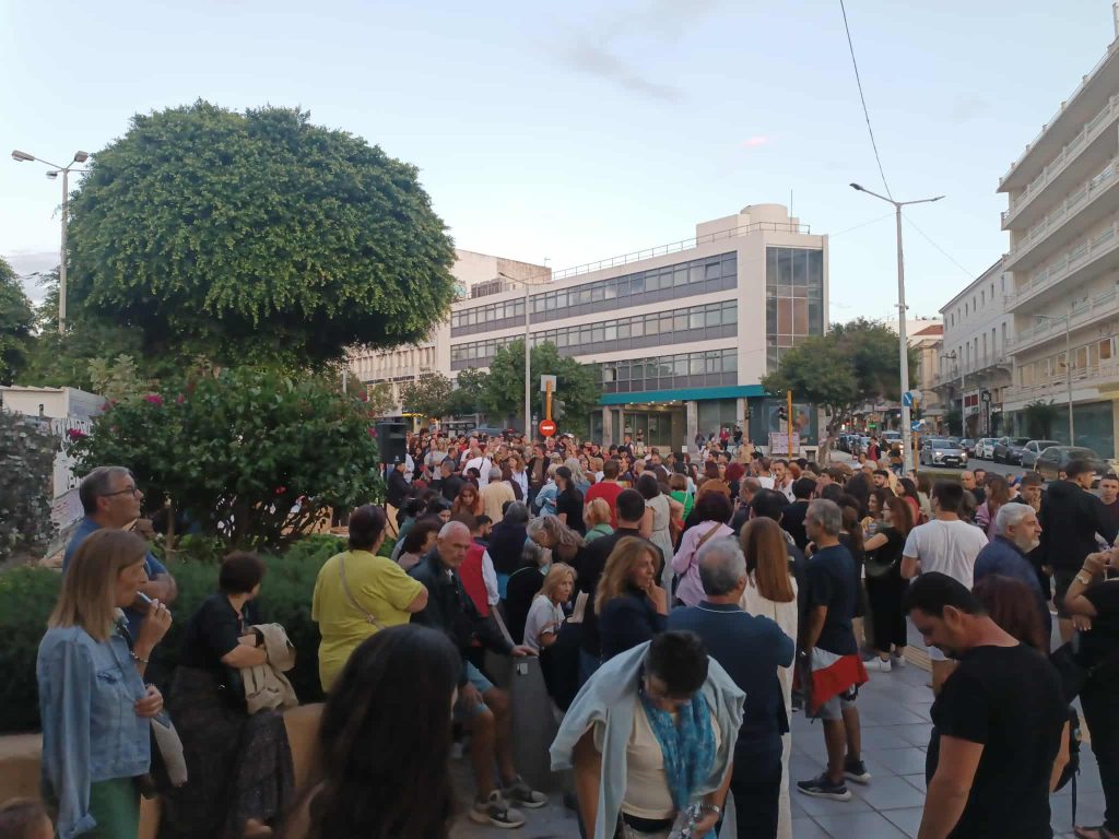 Πλήθος κόσμου όλων των ηλικιών κατέκλυσε το απόγευμα την πλατεία της Δημοτικής Αγοράς των Χανίων για να εκφράσει την αλληλεγγύη του και την συμπαράστασή του στον Πάνο Ρούτσι αλλά και σε όλους τους συγγενείς θυμάτων των Τεμπών.