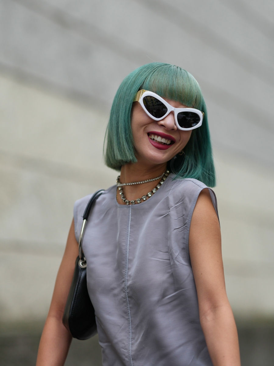 Τιρκουάζ απόχρωση: Οι μπλε τόνοι επιστρέφουν δυναμικά, αυτή τη φορά όμως σε μια πιο κομψή και στιλάτη εκδοχή. Η content creator Aya Suzuki επέλεξε να συνδυάσει το ζωηρό τιρκουάζ χρώμα στα μαλλιά της με ένα αυστηρό καρέ και φράντζα, δημιουργώντας έτσι ένα εκλεπτυσμένο και ταυτόχρονα τολμηρό look που δύσκολα περνά απαρατήρητο. Αυτό το στιλ αποδεικνύει ότι οι έντονες αποχρώσεις μπορούν να συνδυαστούν άψογα με κλασικά κουρέματα, χαρίζοντας μια μοντέρνα και φρέσκια αίσθηση στο σύνολο της εμφάνισης.