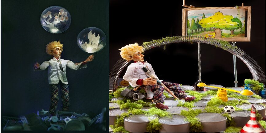 Mέσα από τις σελίδες ενός βιβλίου, οι καλλιτέχνες ζωντανεύουν δυο ιστορίες. Ο ήρωας γεννιέται, μπαίνει σε περιπέτειες, μεταμορφώνεται και ενηλικιώνεται. Η ηρωίδα νικάει τους φόβους της, μάχεται με τρομακτικά, φανταστικά πλάσματα και αλλάζει. Δύο αφαιρετικές-ποιητικές ιστορίες για τη ζωή και το πέρασμα προς την ελευθερία. Διάρκεια: 50΄ – Ηλικία: 8+