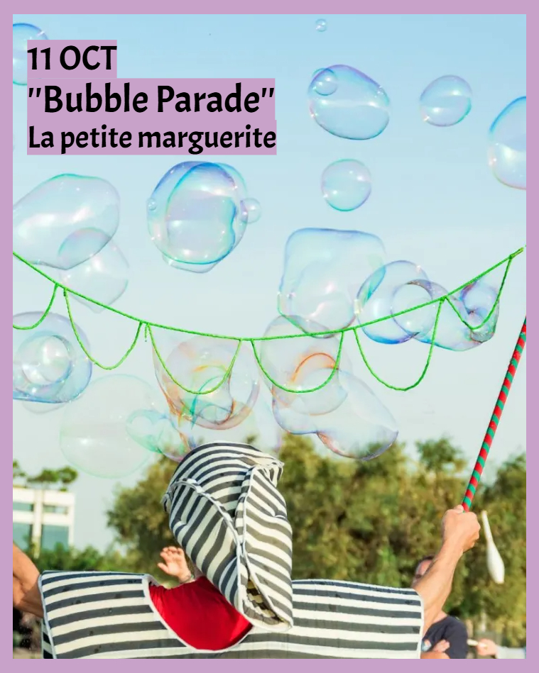 Το απόγευμα του Σαββάτου στις 18.00 θα γίνει μια μεγάλη παρέλαση διάρκειας 90 λεπτών, ένα bubble show από την ομάδα «La petite Marguerite», κρουστά , κούκλες και πολλούς φίλους του κουκλοθέατρου , που θα ξεκινήσει μπροστά από το Πνευματικό Κέντρο θα διασχίσει την Κεντρική πλατεία και θα καταλήξει στο Δημοτικό Πάρκο ΟΣΕ στο χώρο του πατινάζ. Ένα μεγάλο θεατρικό δρώμενο που θα αναγγείλει με τον πιο χαρούμενο τρόπο την έναρξη του Φεστιβάλ.
