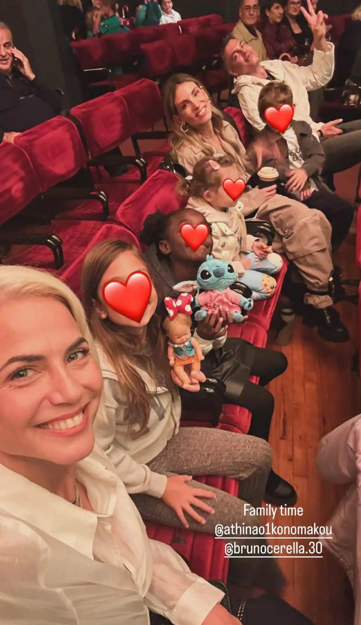 Αθηνά Οικονομάκου: Στο θέατρο με τα παιδιά της και τον Μπρούνο Τσερέλα – Φωτογραφία