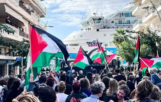 Διαδηλωτές με συνθήματα υπέρ της Παλαιστίνης «υποδέχτηκαν» το ισραηλινό Crown Iris Ισχυρές αστυνομικές δυνάμεις στο λιμάνι Καλαμάτας