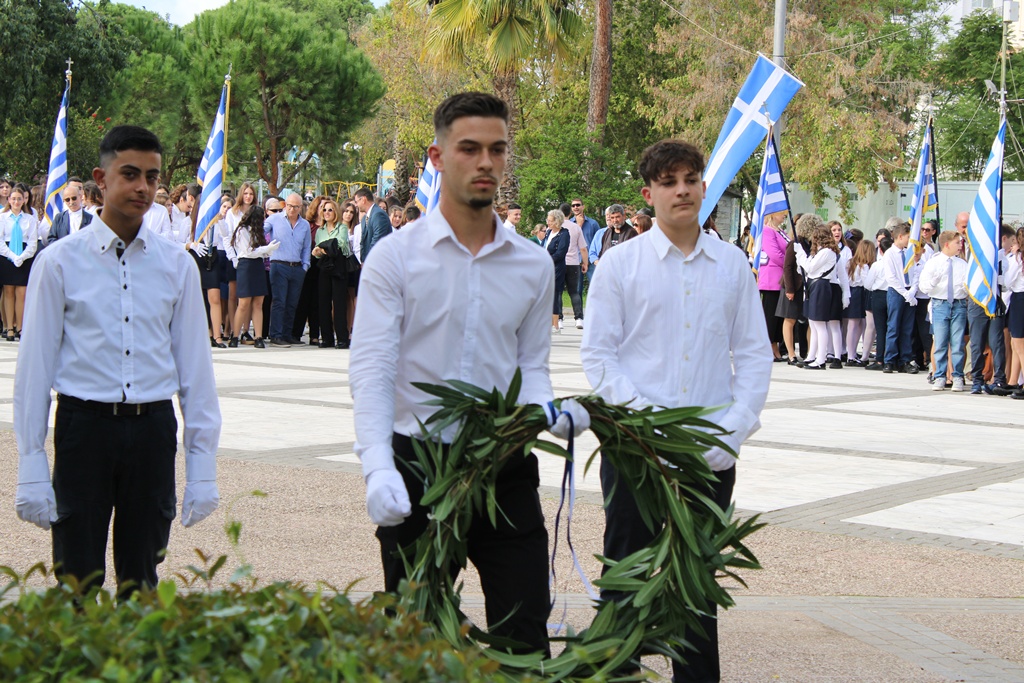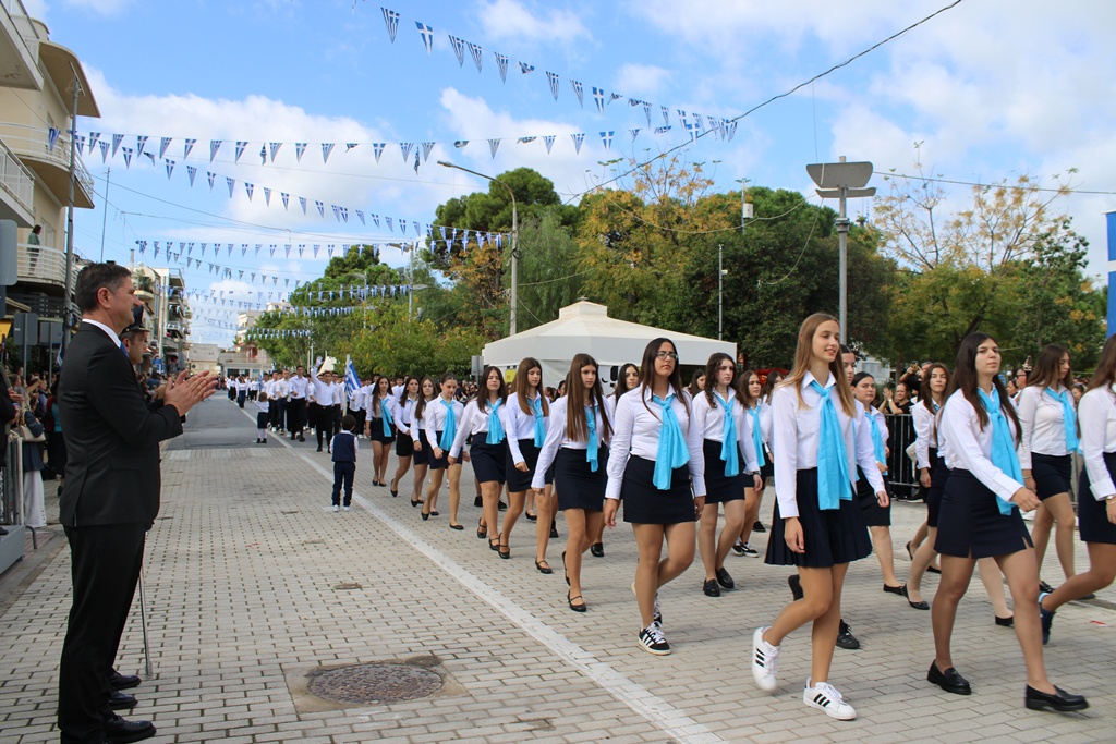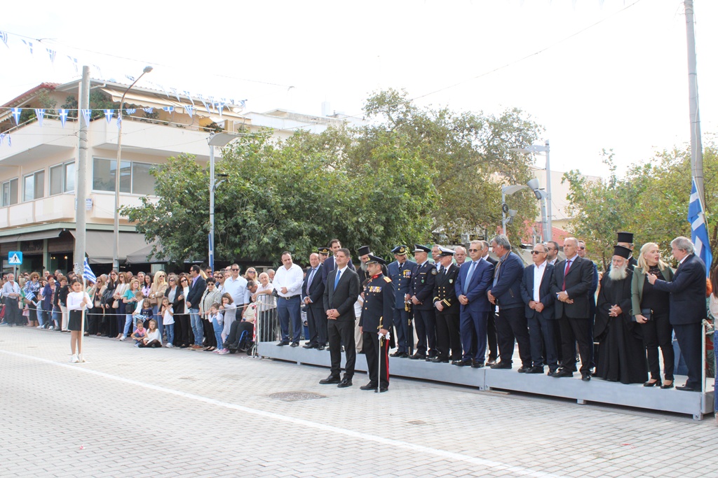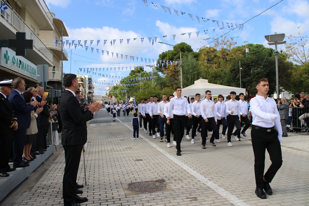 Ο Δήμαρχος Μεσσήνης Γιώργος Αθανασόπουλος στον χαιρετισμό του αναφέρθηκε στο Έπος του 1940, τονίζοντας ότι η σημερινή μέρα αποτελεί ημέρα τιμής και μνήμης, που μας καλεί να διατηρήσουμε ζωντανές τις αξίες των προγόνων μας. Μέσα από το παράδειγμά τους σημείωσε, οφείλουμε να πορευτούμε στο μέλλον με αλληλεγγύη, ομόνοια και αγάπη για την πατρίδα. Ακολούθως, ο Δήμαρχος συνεχάρη όλους τους μαθητές που παρήλασαν, καθώς και τους εκπροσώπους φορέων και συλλόγων, ενώ εξέφρασε ιδιαίτερη ικανοποίηση για τη συμμετοχή, για πρώτη φορά, του Αγήματος του 9ου Συντάγματος Πεζικού στην παρέλαση της Μεσσήνης.